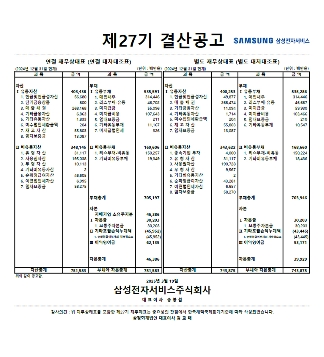 제27기 결산공고