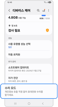 갤럭시 수리 시 수리 모드를 사용하여 안전하게 개인정보를 보호하세요.