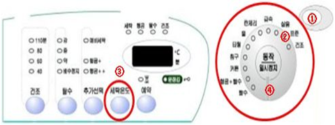 [무세제통세척] 버튼의 램프가 점멸되는 모델