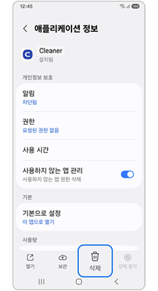 2단계) 의심되는 악성 외부 앱을 선택하여 삭제하세요.