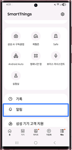 스마트싱스 앱으로 수신된 알림 확인 방법
