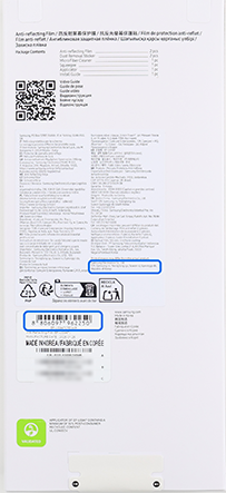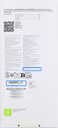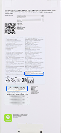 갤럭시 S26 시리즈 정품 AR 필름은 필름박스 전/후면에 다음과 같이 표기되어 있습니다.